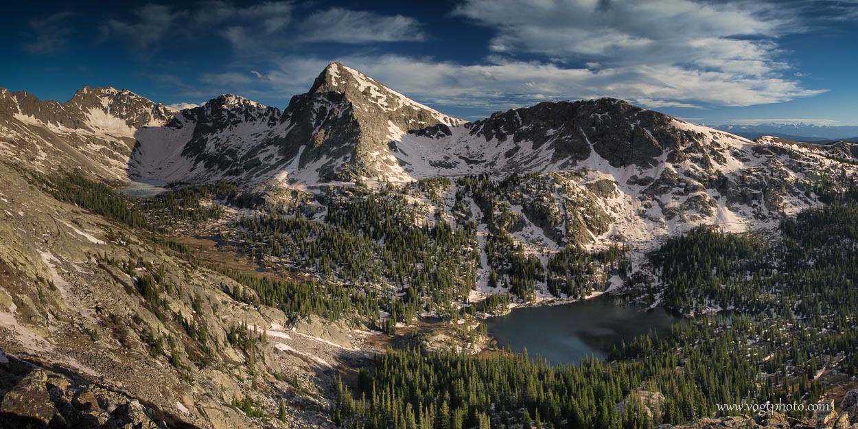 Lake Charles and Mystic Island Lake sit at the head of East Brush Creek; a creek that finds its source in a cirque with towering 13,000′ peaks surrounding the valley. The scale of the image above is impressive. More than a mile separates Lake Charles (in the lower right of the frame) and Mystic Island Lake (in the upper left of the frame).