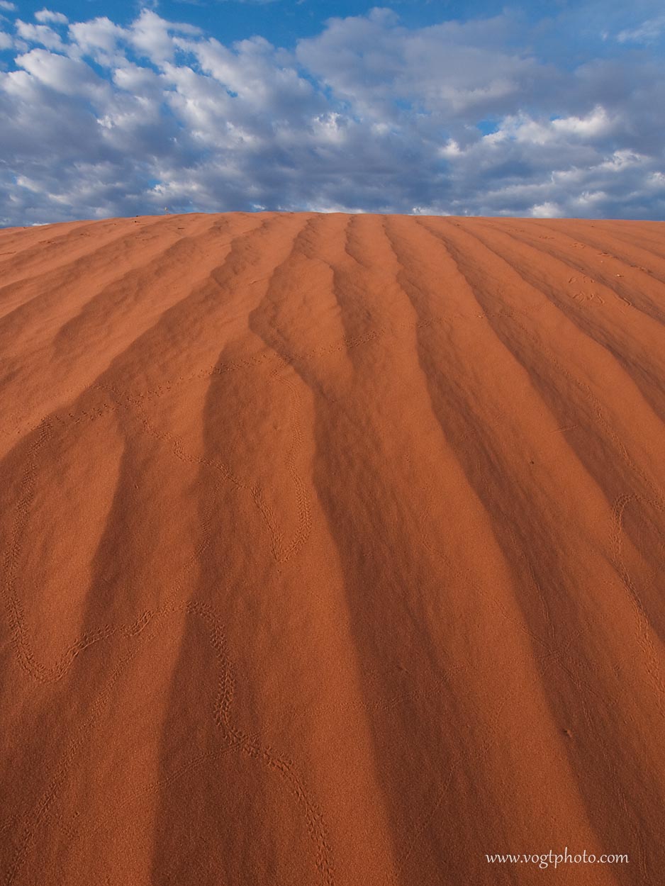 The desert is alive! Insect tracks crisscross a windswept pattern in the sandy landscape near Lake Powell in Glen Canyon National Recreation Area.