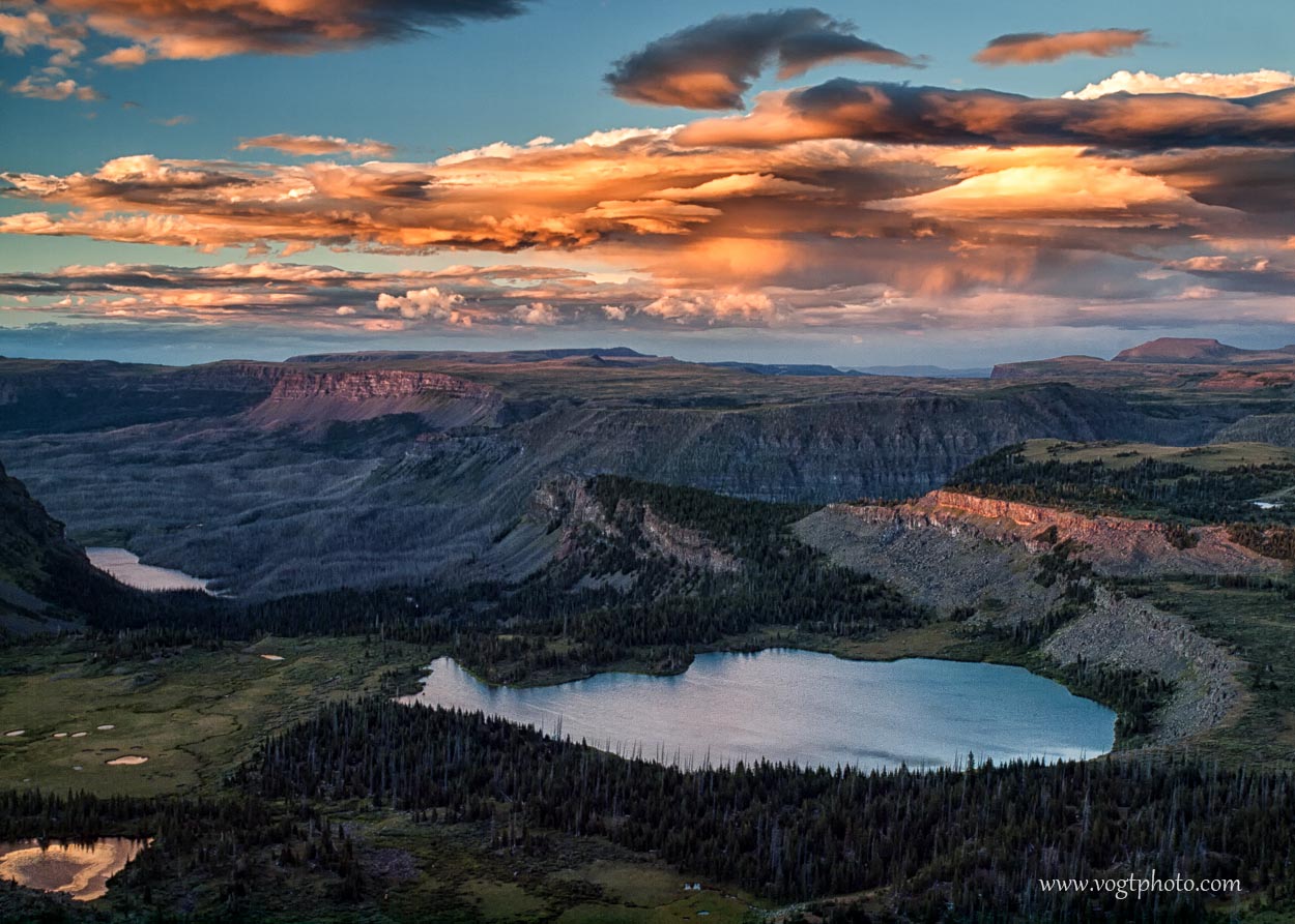 A clearing storm is lit ablaze by the last rays of sunlight high above Wall Lake as seen from Trappers Peak, deep in the Flat Tops Wilderness.