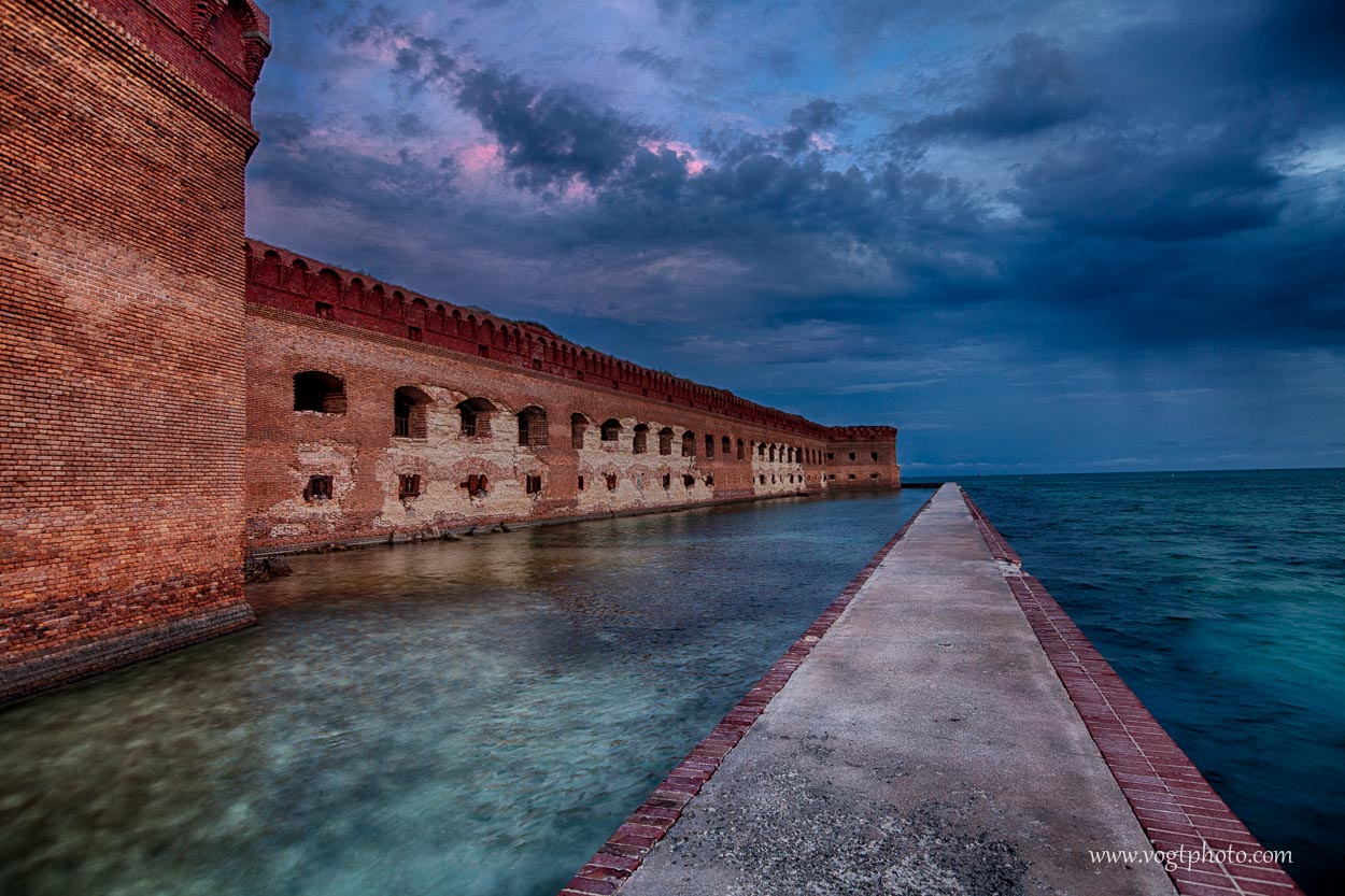 I always thought the end of the Florida Keys was at Key West; well, the roads end there, but seventy miles further west sit the Dry Tortugas, the true end of the Florida Keys. On Garden Key, sits the massive Fort Jefferson; the third largest coastal defense fort in the United States and, with over 16 million bricks, the largest masonry built structure in the Americas. Although accessing the fort is very easy thanks to the Yankee Freedom ferry, access at my favorite times to photograph, sunrise and sunset, is a bit more challenging. With the Yankee Freedom arriving at the island each day at mid morning, and then leaving mid afternoon, an overnight stay was in order. As luck would have it, very limited primitive camping is provided on the island and I booked a two night stay in the first week of June.